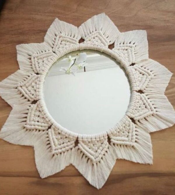 آیینه مکرومه، آیینه مکرومه رنگی، آیینه مکرومه کوچک، خرید آیینه مکرومه دستساز، آیینه دیواری مکرومه، آیینه مکرومه دکوری