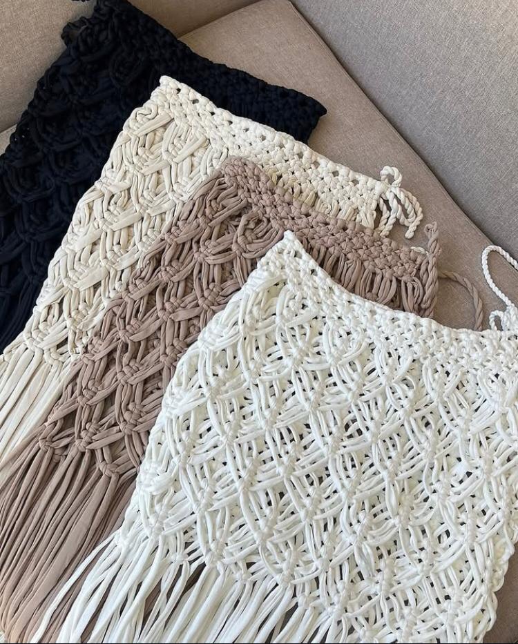 دامن مکرومه، دامن مکرومه دستساز، خرید دامن مکرومه، دامن زنانه مکرومه، دامن مکرومه هنری، لباس مکرومه، دامن مکرومه سبک