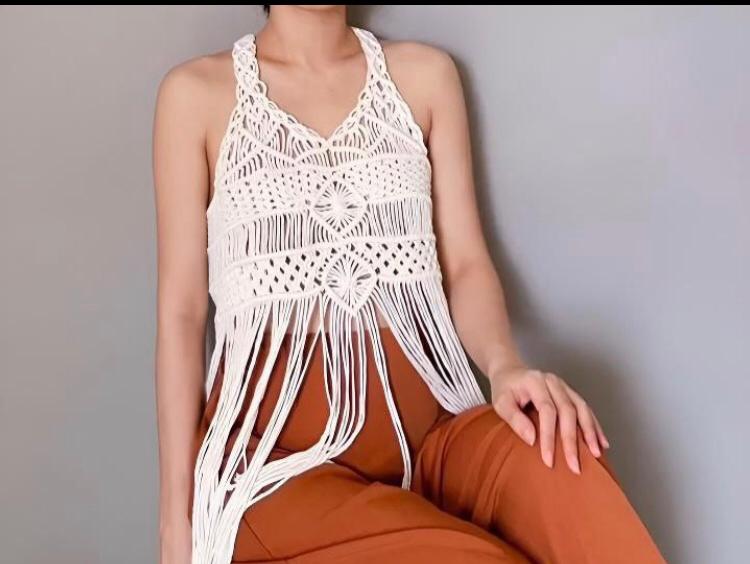 لباس سفید مکرومه با طراحی دستباف، سبک و کاربردی .