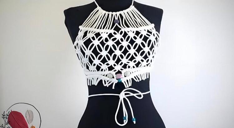 لباس سفید مکرومه با طراحی مدرن دستباف، مناسب برای استایل خاص.