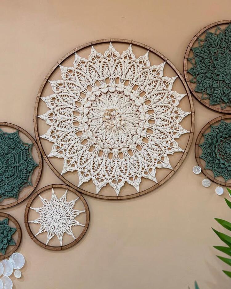 ماندالا متوسط دستباف با رنگهای جذاب و طراحی هنری، مناسب برای دکور و فضاهای داخلی.